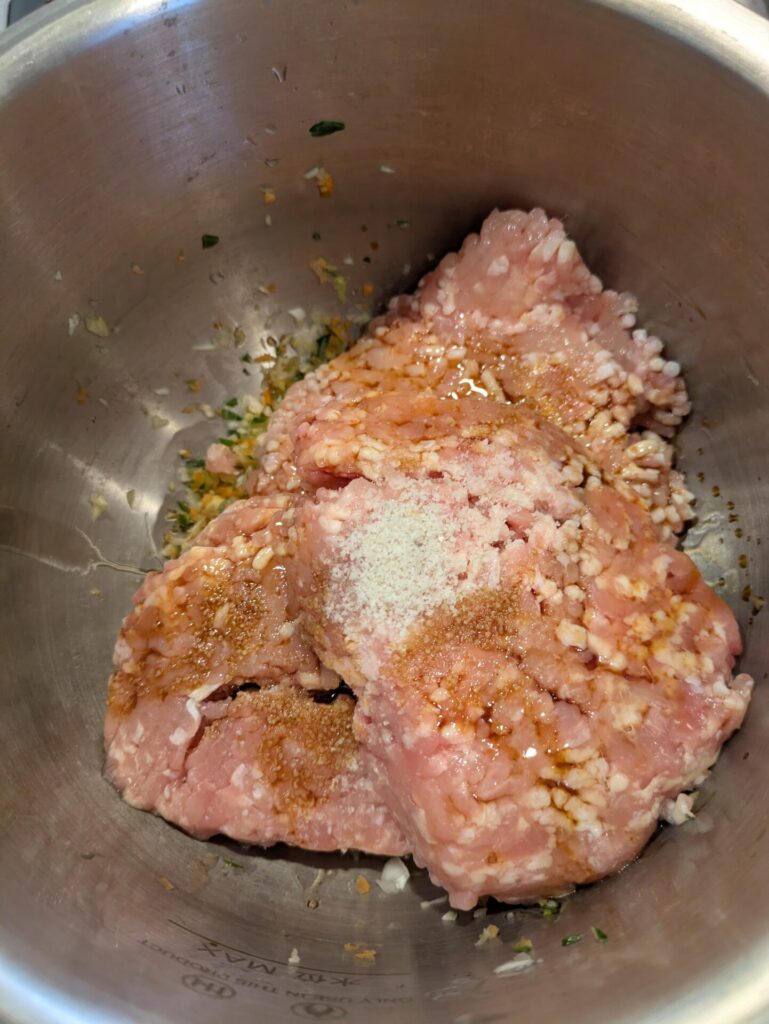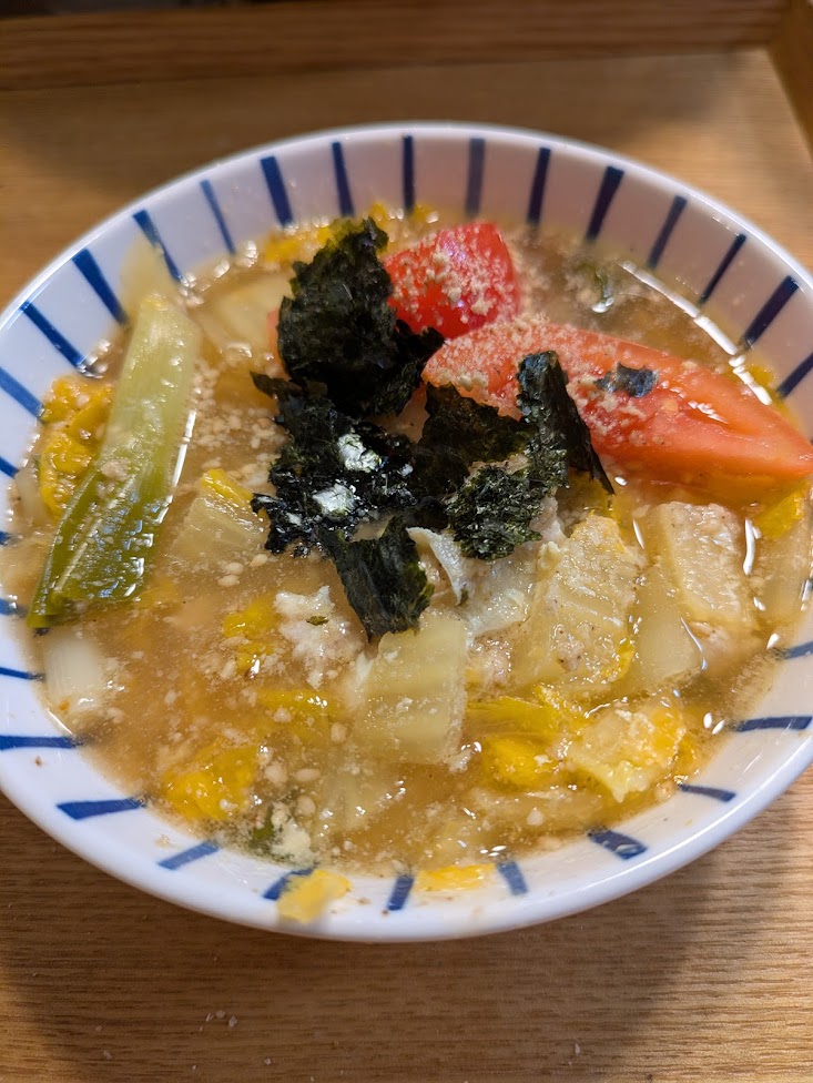 鶏ミンチと、何かの野菜と、塩、ごま油くらいで作ることも。笑
