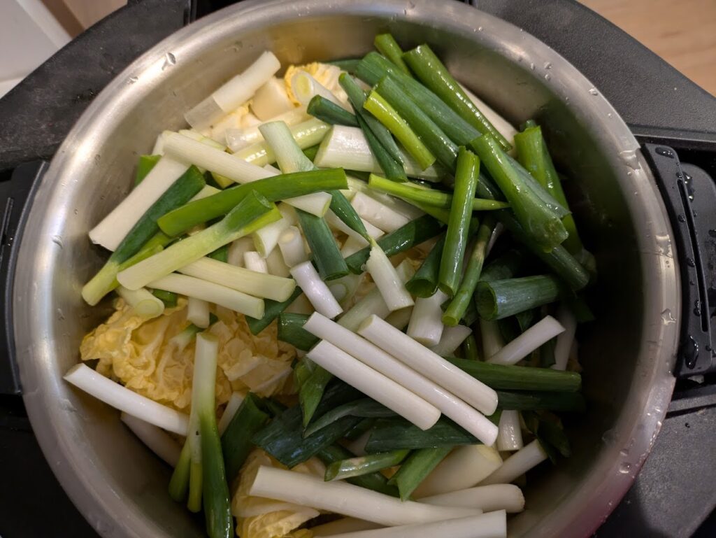 ③上に、白菜やネギ等をいれる
