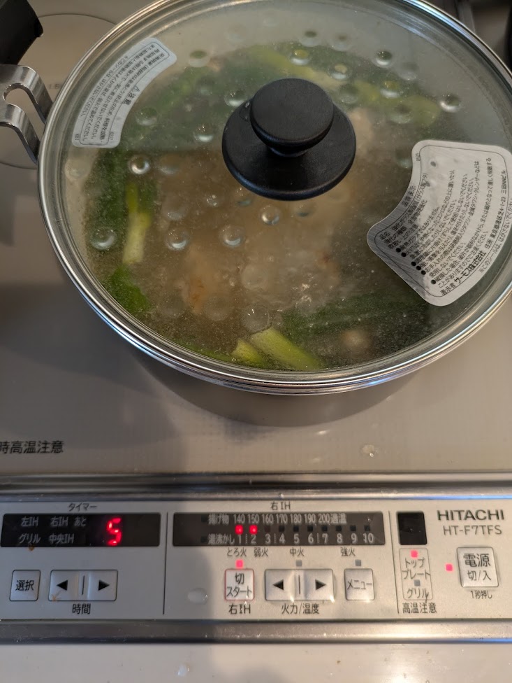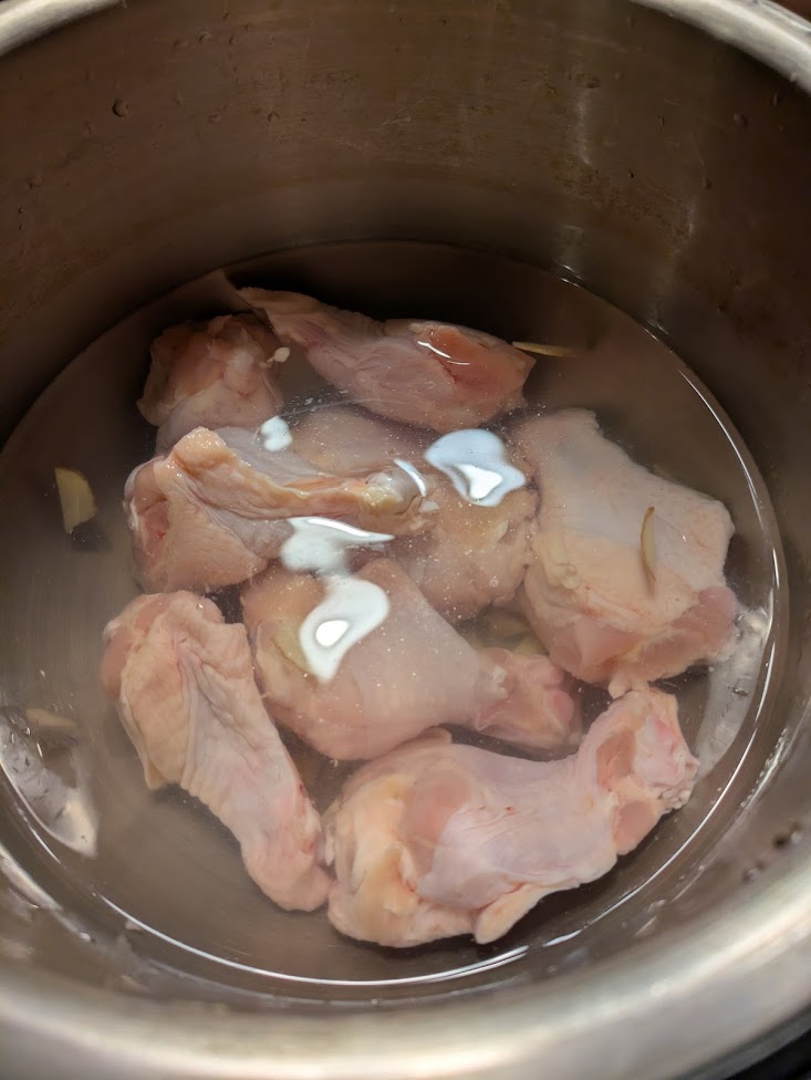 ホットクックに入れた手羽元と水(ネギを切らしていた・・・)