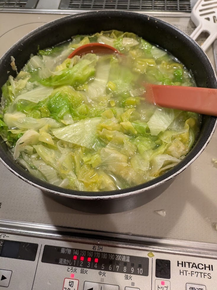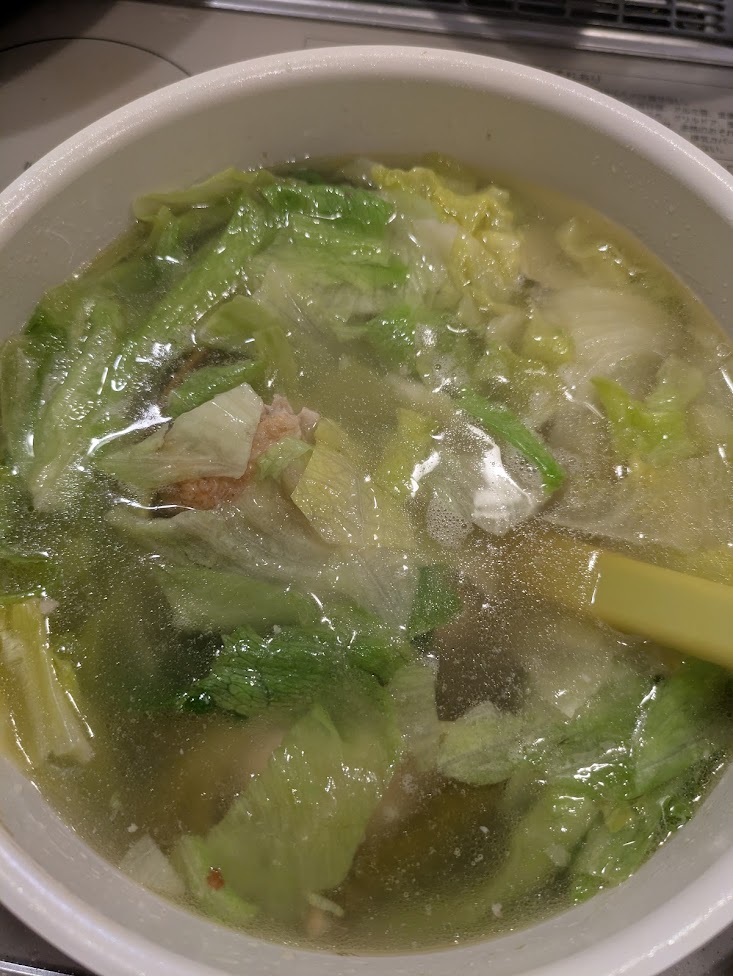 放置後、再度沸騰、あとはレタスや塩で味つけ