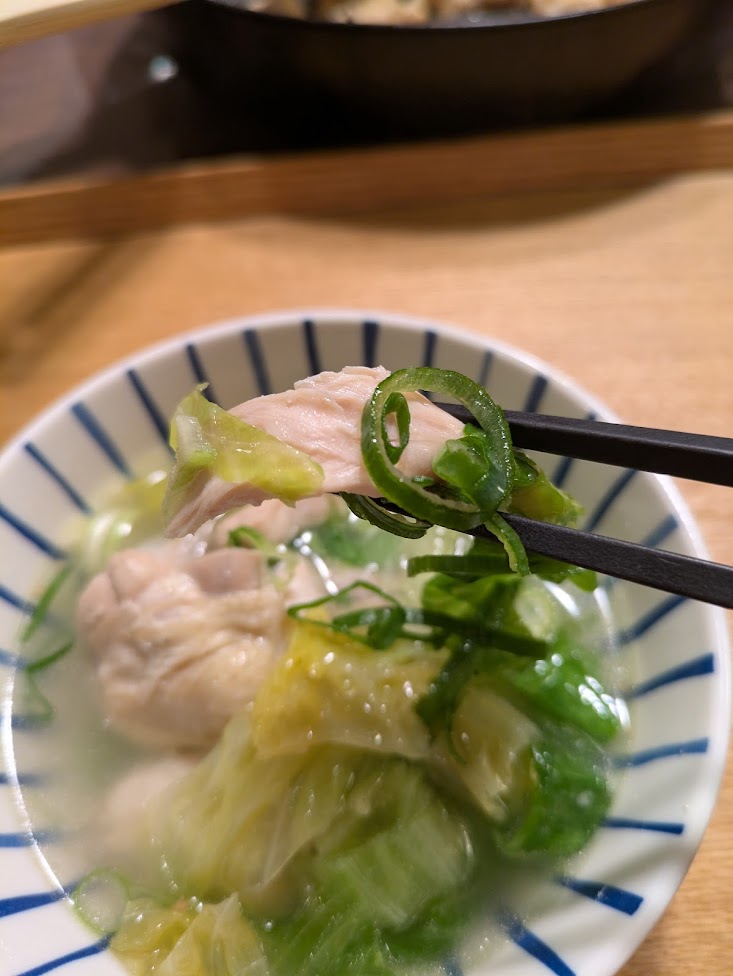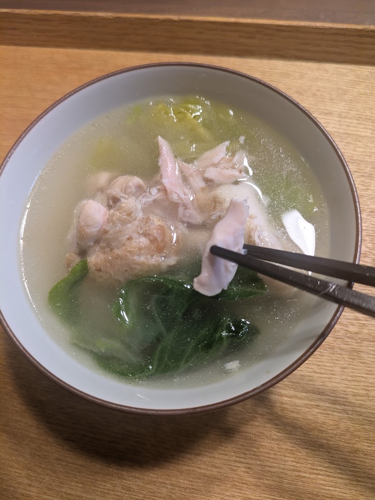 箸で崩れる柔らかお肉♪しみわたる、やさしい鶏のスープ